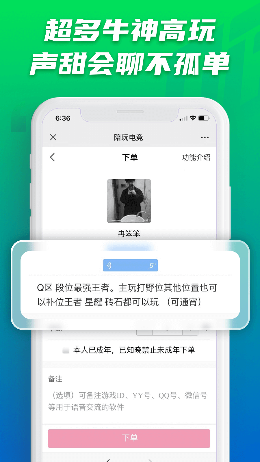 用户可以根据游戏类型、陪玩性别、陪玩价格区间等多种条件进行筛选,精准找到符合自己要求的陪玩。软件还提供了实时在线陪玩的信息,用户可以看到哪些陪玩正在线上,方便随时发起陪玩邀请。软件还设有新手指导板块,对于刚接触电竞陪玩的用户,这里有详细的操作指南和常见问题解答,帮助他们快速熟悉平台规则和使用方法。软件会定期举办各种电竞活动和比赛,用户和陪玩可以组队参加,赢取丰厚的奖品和荣誉。