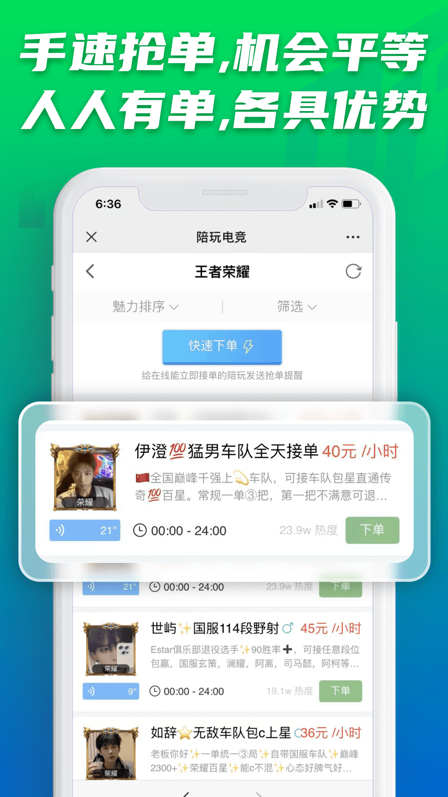 陪玩电竞软件拥有庞大的陪玩资源库,陪玩数量众多且质量高。这些陪玩都是经过严格筛选和审核的,具备丰富的游戏经验和良好的服务态度。软件的价格体系透明合理,用户可以根据自己的经济实力选择不同价格区间的陪玩。软件会不定期推出优惠活动和折扣套餐,让用户享受更多实惠。软件的客户服务团队专业高效,无论用户在使用过程中遇到什么问题,都能及时得到解决。软件不断更新和优化功能,始终保持良好的使用体验。
