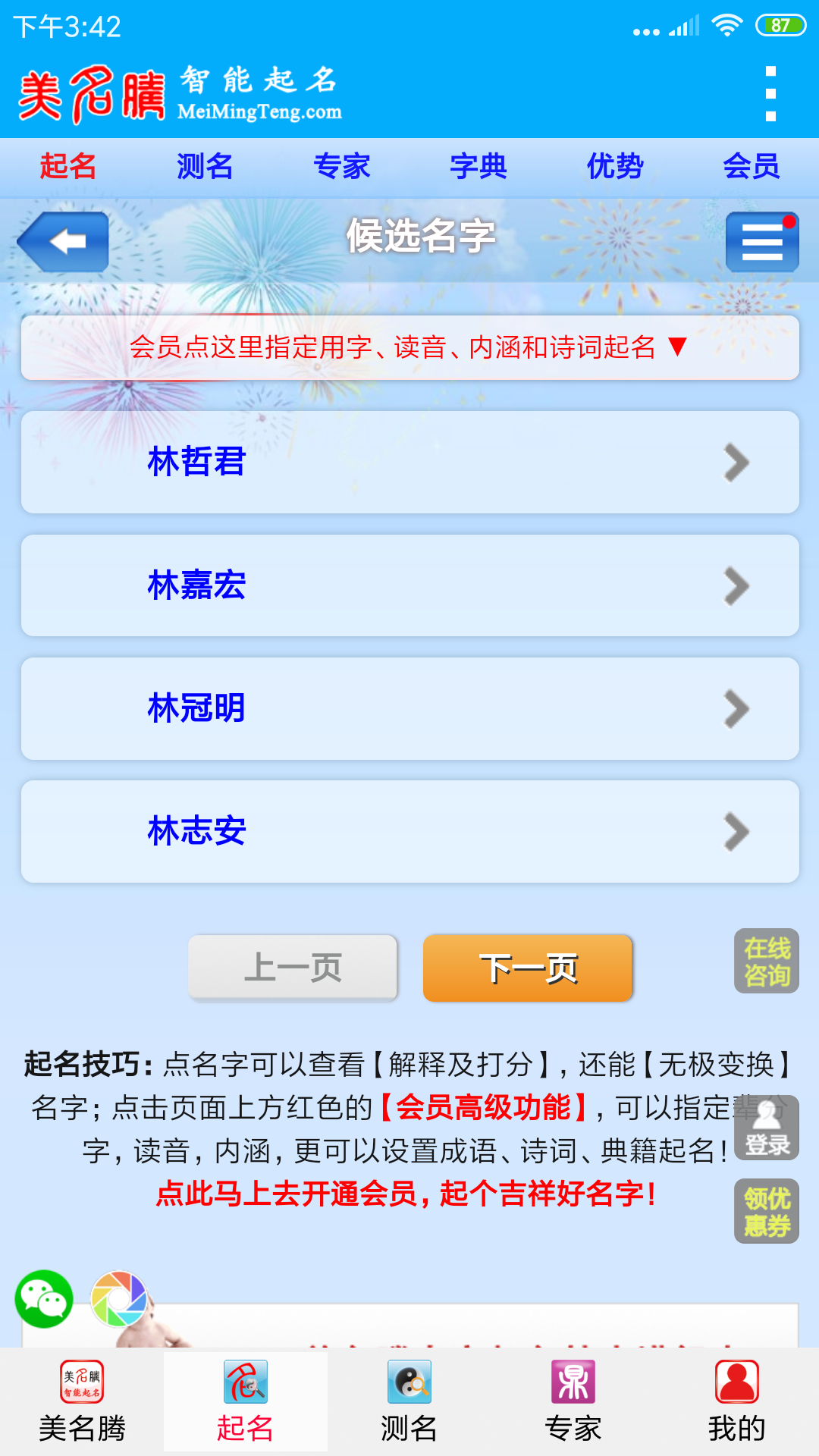 美名腾宝宝起名软件是一款专注于为宝宝提供专业起名服务的应用。它集合了丰富的起名知识和庞大的字词数据库,能根据不同的需求和偏好,为宝宝生成寓意美好、朗朗上口的名字。无论是传统的五行八字起名法,还是追求时尚新颖的起名风格,都能在这款软件中找到合适的解决方案。