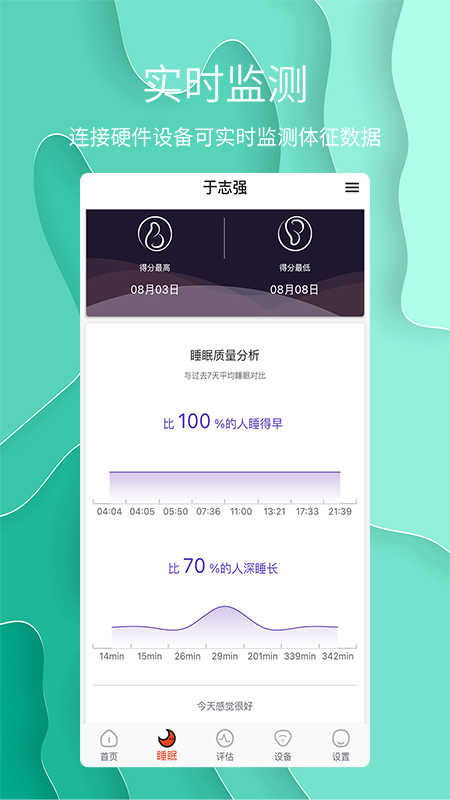 舒睡是一款专注于帮助你改善睡眠质量、守护夜间安全的手机应用。它既是你的个人睡眠助手,通过舒缓音乐、放松训练和睡眠追踪来营造入睡氛围;同时也是智慧康养的好伙伴,当你搭配专用的智能床垫使用时,它能化身为贴心的健康监护仪,实时监测你的呼吸、心跳等生命体征,让家人或照护者能够远程了解你的睡眠与安全状况。无论是想获得更优质的睡眠,还是需要一份安心的夜间看护,舒睡都能为你提供贴心的服务。