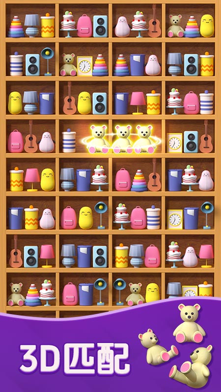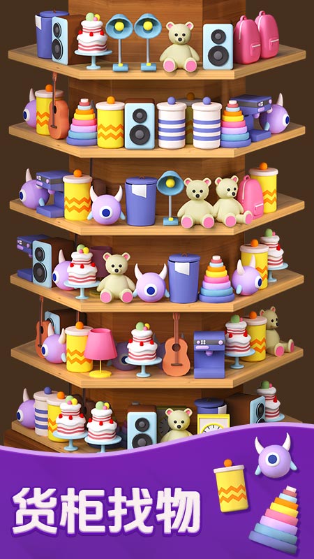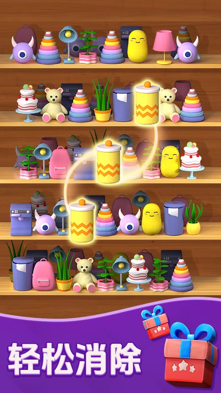 进入应用后,参与者将面对一个个摆满各种物品的货柜,物品类型涵盖水果、饮料、杯子、卡通动物等,种类十分丰富。核心操作规则是,在货架上寻找并移动相同的物品,当三个或以上相同物品被放置在同一个货架格内时,即可触发消除。需场景中的物品存在前后层级关系,必须优先消除或移开前排物品,后排的物品才会显现并可被操作。应用内设计了海量关卡,难度呈渐进式提升,从基础教学到复杂布局,逐步考验参与者的观察力、分类能力与全局规划能力。除了常规闯关模式,还设有限时挑战、锦标赛等多种模式,并辅以丰富的道具系统,如一键消除、更换模型等,以帮助应对更具挑战性的局面。